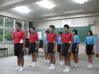 学校長激励の後、選手が1人ずつ大会に向けた目標を述べ、決意表明をしました。その後、3年生を代表して、前部長の長谷川君がアドバイスを含めた激励の言葉を述べました。