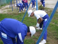生徒たちは、日頃体育の授業などで使用している校庭を、一生懸命きれいにしようと頑張っていました。