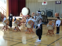 第二部では、桶売小中学校による「鬼ヶ城太鼓」のご指導をいただきました。