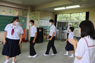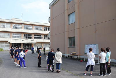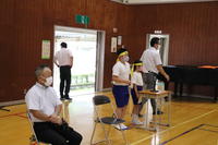〇続けて市陸上大会激励会を行いました。出場する1.2年生は自分の種目と目標を宣言し、激励の言葉が3年生から1.2年生にかけられました。大会は9月6日(日)です。これからの練習の成果を発揮してほしいです。