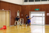 しかしながら、今日はあいにくの雨・・・。そこで今日の合同体育ではソフトボールを行いました。