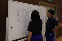 カルタ形式で英単語を学習している様子です。先生が日本語訳を読み上げ、それに合う英単語の札を取ります。生徒一人ひとりが、素早く札を取り合っていました!日頃の学習の成果が存分に発揮できていました。