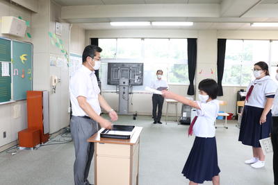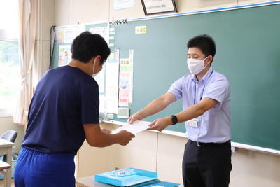 〇学活では通知表の配付と夏休みの過ごし方について担任より話がありました。