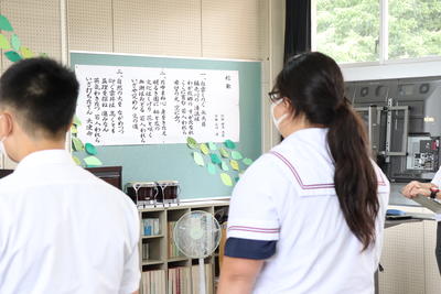 また、非核平和都市宣言についてもお話がありました。生徒達はいわき市民憲章・非核平和都市宣言カードを見ながら、校長先生の話を真剣に聞いていました。過去を次の世代に伝えていく大切さを感じることができました。