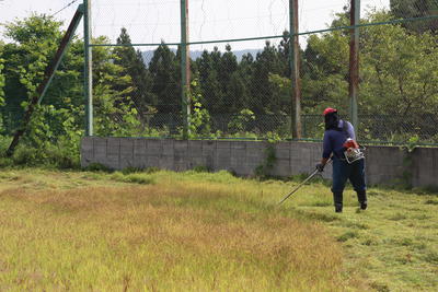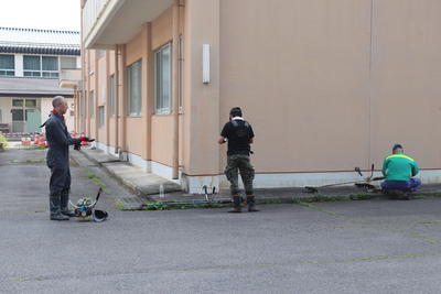 今回の作業は「校舎周りの除草」「校舎内の窓・サッシの清掃」「校舎内のトイレ・手洗い場の清掃」でした。