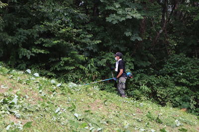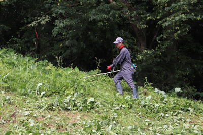 〇除草のようすです。暑い中、作業着を着ての作業、ありがとうございます。
