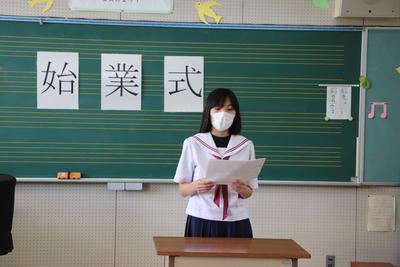 校長先生からは「失敗を恐れないこと」「悩みを相談すること」「困難に突き当たっても逃げないこと」について話がありました。また、受験を控えている3年生に向けては、やらされる学習では無く、自ら求める学習ができるよう、高い目標をもって勉強に励んでほしいと言葉をかけていました。