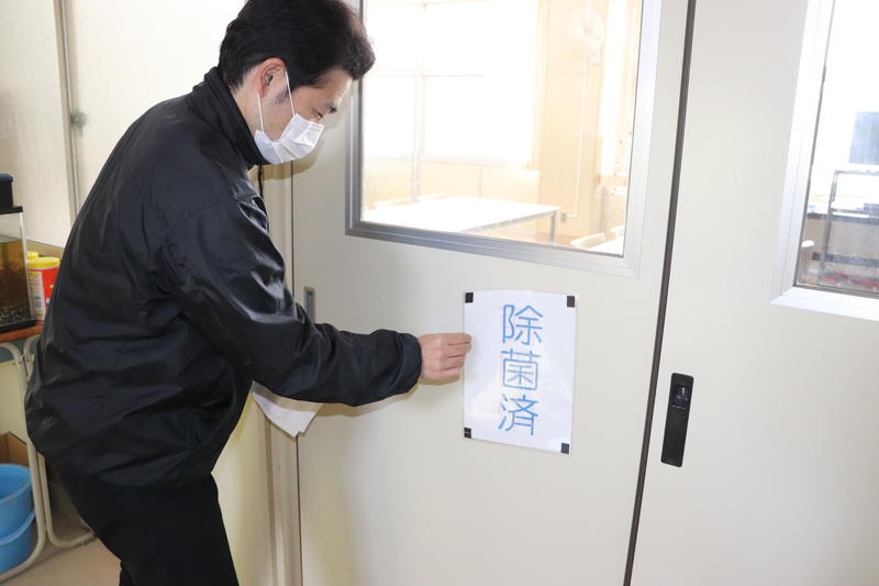 校内の消毒活動も継続して行っております。現在は、企業様から無償提供された「微酸性電解水」を使用しています。教職員一同、引き続き感染予防に努めてまいります!