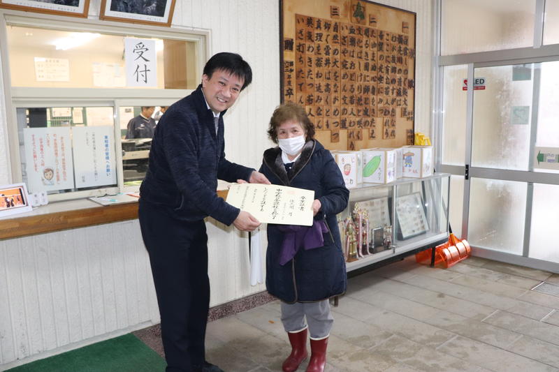 今朝、上桶売の歴史ある安楽寺様が、卒業証書を届けに来てくださいました。桶売中学校では、毎年安楽寺様に卒業証書を書いていただいています。今年も書いていただきました!
