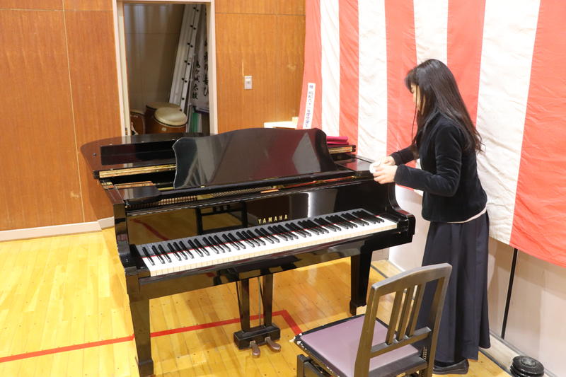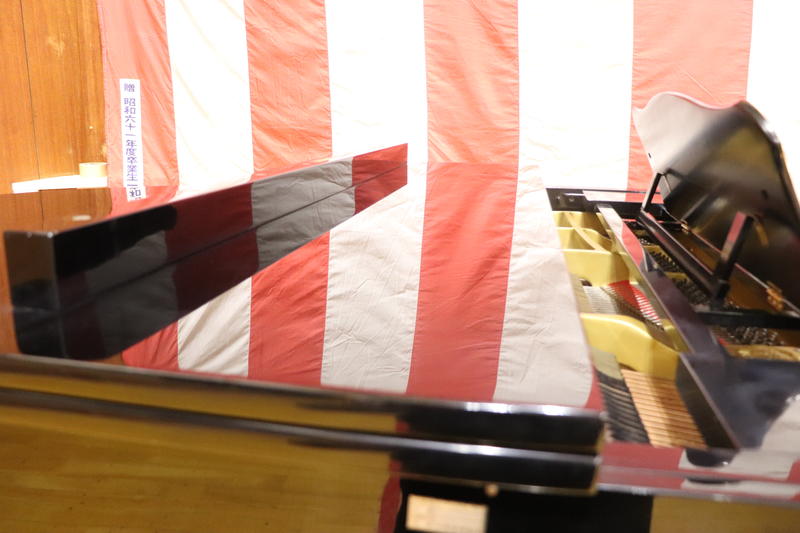 桶売小中学校の体育館にあるピアノをメンテナンスしています。
