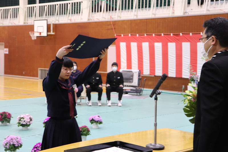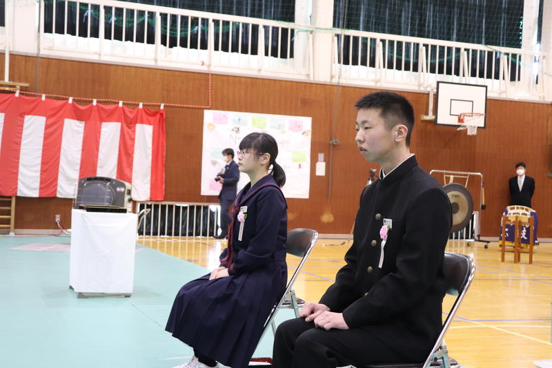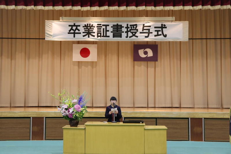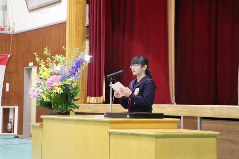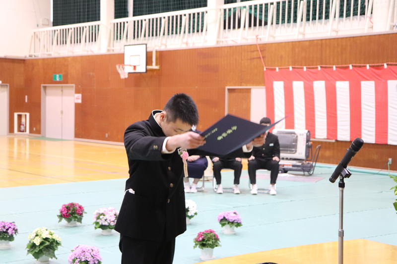 卒業生代表から答辞として、級友、在校生、保護者、地域、教職員の全ての方々に対しての感謝の気持ちと、3年間の思い出、励まし、決意などが立派に伝えられました。