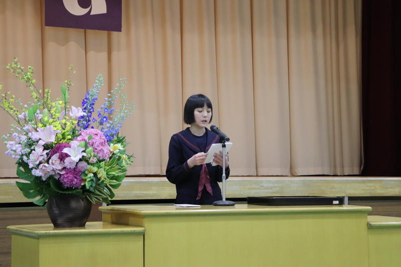 生徒会長から、感謝の気持ちのこもった送辞が贈られました。