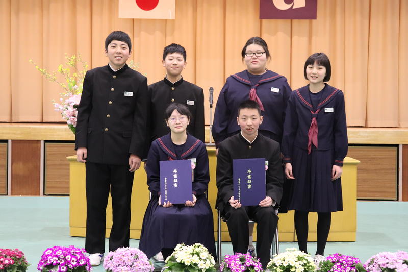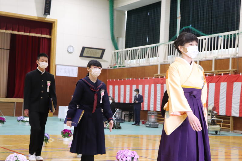 今回、新型コロナウィルスの感染拡大に伴い、縮小しての式典となりますが、小中教職員の気持ちは、例年と変わりません。卒業児童生徒の皆さん及び保護者の皆様に、心よりお祝い申し上げます。