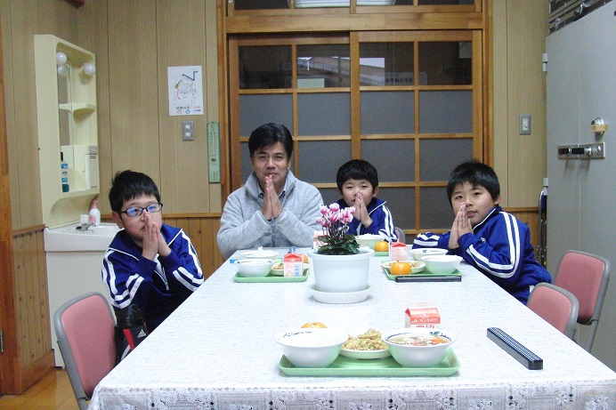 校長先生と交流給食
