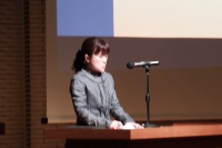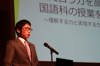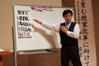 その後、第1部発表でパネルディスカッション「よい授業とは」、福島県教職員研究論文発表(矢内丈博教諭)、勿来第三小学校算数科研究発表(蛭田水季教諭)、夏井小学校図画工作科研究発表(小島ひとみ教諭)によるステージ発表