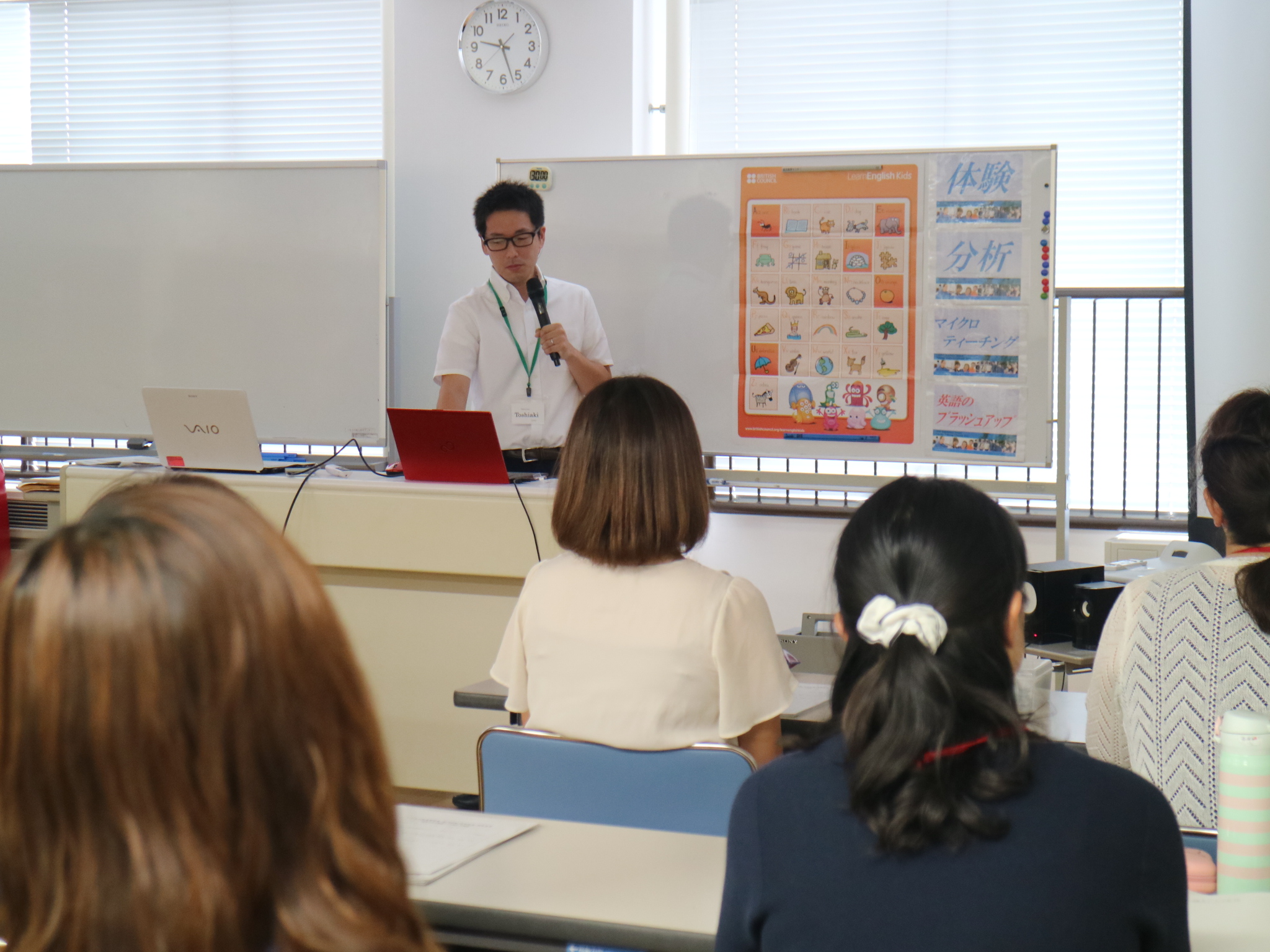 絵本を用いての授業作りや、身につけさせたい単語や会話文を子どもが楽しみながら取り組むための仕掛け作りなどを、たくさん学べた二日間でした。受講した先生からは「いろいろな方法や手立てがあり、とても勉強になった」「研修の前後で、外国語の授業に対する意識が大きく変わった」などの感想が挙げられました。