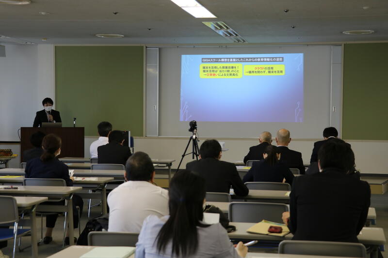 2022年6月1日 09時26分5月18日(水)に情報教育主任研修を行いました。GIGAスクール構想実現に向けて、今の取組を振り返るとともに今後の進め方について、講義、実践発表、協議を通して理解を深めました。講義では、環境整備や情報教育主任の役割についてハード面とソフト面からお話しさせていただきました。実践発表、協議では、小学校は夏井小学校、中学校は内郷第一中学校の先進的な取組をご紹介いただくとともに、その発表をもとに小グループで協議を行いました。
