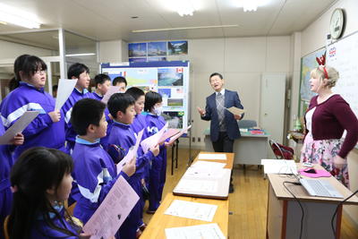 本日ALTのジェシカ先生と桶売小学生と一緒に英語の授業を行いました。始めは、クリスマスの歌を英語で歌ったり、英語で自己紹介をしたり、今日の授業で使う曜日や時間の読み方や、国の読み方を皆一緒に確認したりしました。