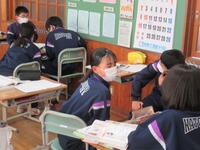 日清戦争後の東アジアの動きについて学習しています。3枚目写真の教科書にあるビゴーのイラスト(教科書の左上)が、この時期にはよく登場します。当時の、日本を中心とした国際情勢が風刺されており、面白いですね。