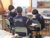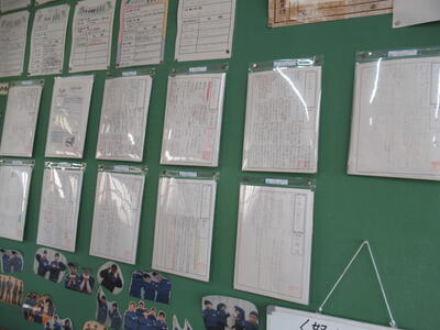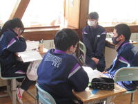 2年生も、進路学習として、市内の高等学校について調べまとめた「高校新聞」が、教室背面に掲示されています。