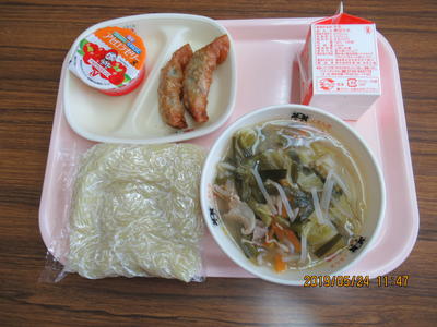 2019年5月24日 12時49分味噌ラーメン しそ餃子 アセロラゼリー 牛乳 867kcal