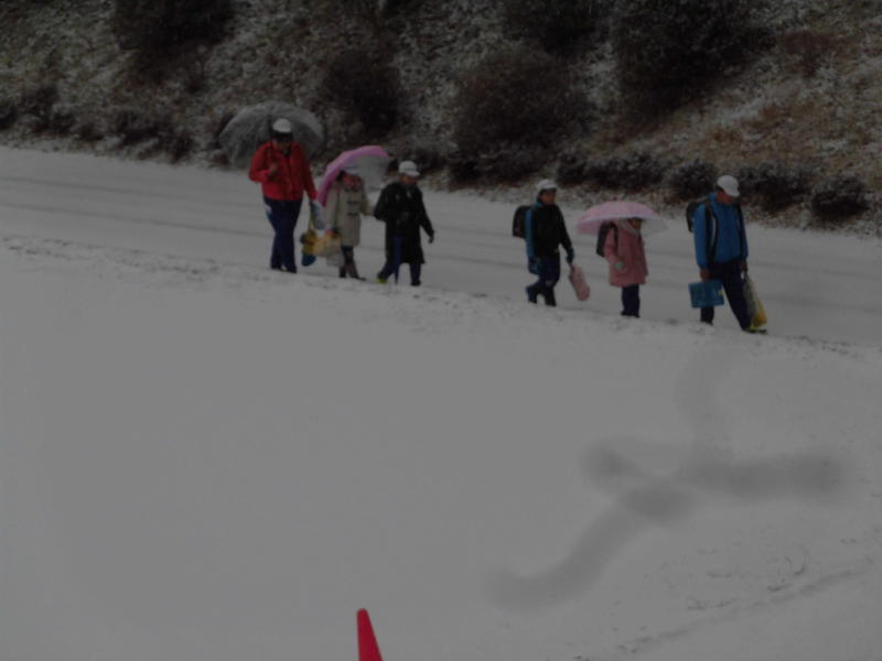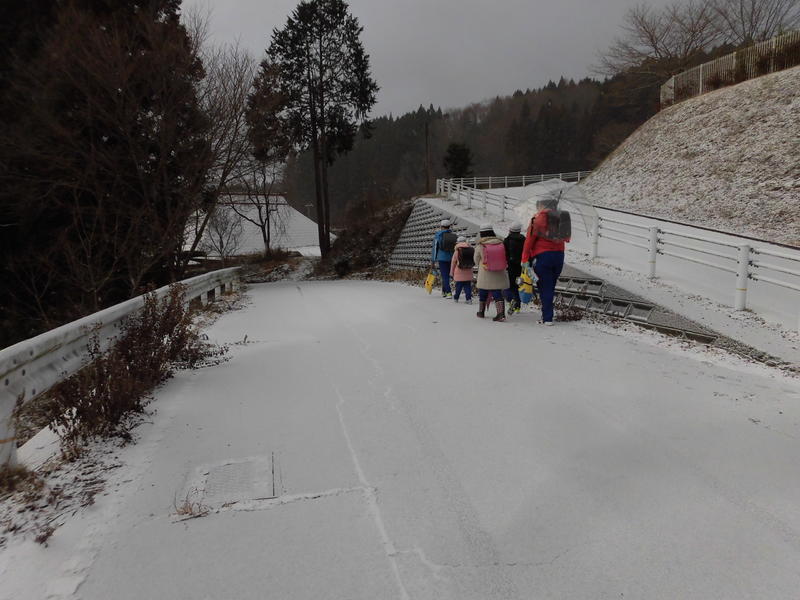 学校まで約1㎞。雪に隠された凍結箇所に気をつけて歩く、登る。
