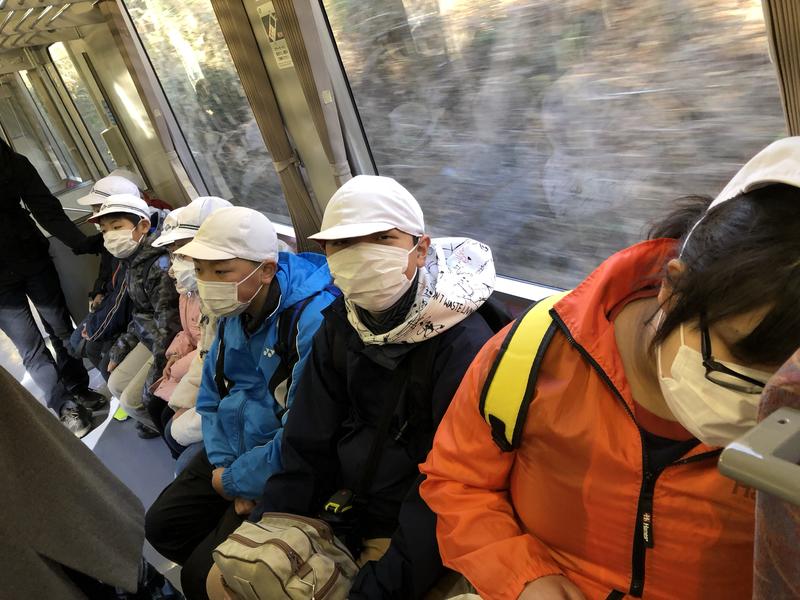 汽車が止まるぐらい風が強い日でしたが、何とか乗り込んでほっと一息です。後はいわき駅まで一休み。なかよく一列に並んで座りました。