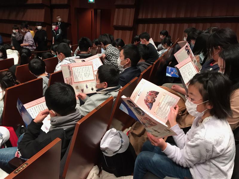 開演5分前。みんなパンフレットに興味津々です。どんな「かんげき」があるのか、ワクワクしています。