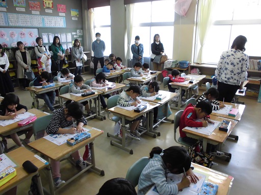 本日は授業参観。1年生はおうちの方が来るとあって大はしゃぎ?