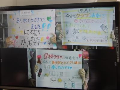今年度はテレビ放送による送る会でしたが、メッセージビデオありスライドショーありで、機器の活用を前面に生かした会になりました。