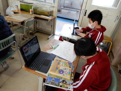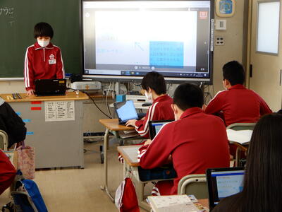 2022年2月28日 13時36分2月28日(月)、6年生の社会科の時間に、タブレットのプレゼンテーション機能を使って学習成果の発表をしていました。