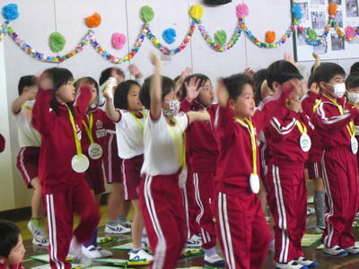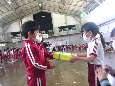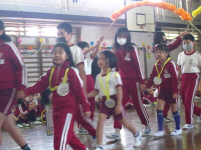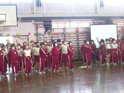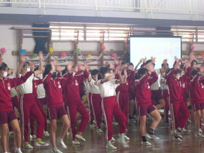 昨日、体育館で1年生を迎える会を行いました。数年ぶりに、1年生と各学年が対面しての会となり、どの学年も1年生のためにと工夫を凝らした出し物を披露してくれました。おかげで、1年生のキラキラした笑顔がたくさん見られるすてきな会となりました。