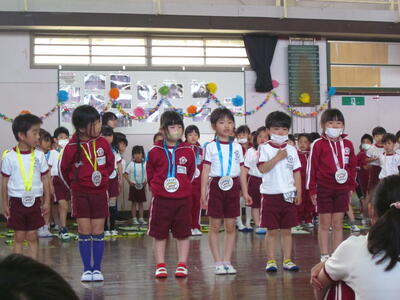 本日は,週休日になりますので,お身体等をしっかり休ませ明日の運動会本番におそなえください。