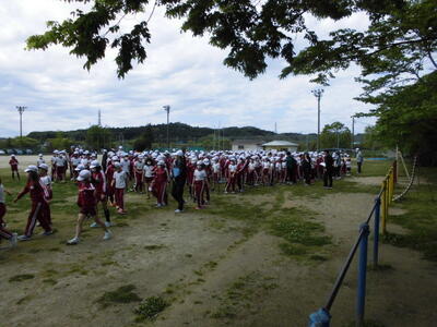 校庭がぬかるむため、避難の際は外履きに履き替えての避難とし、避難経路の確認を中心に行いました。