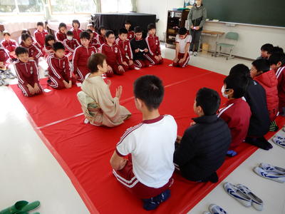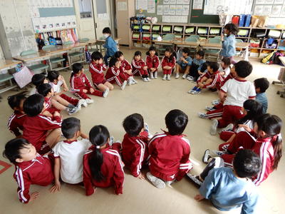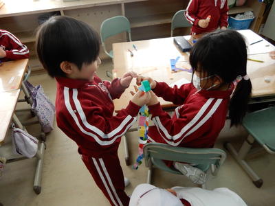 1月31日に、磐崎幼稚園の園児が磐崎小学校へ来校し、1年生と交流会をもちました。