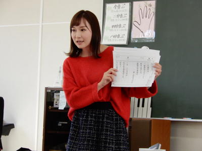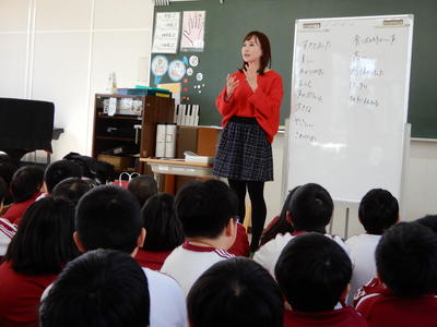 アナウンサー仕事の内容についてだけでなく、発声練習の仕方やテレビの裏側のお話もしてくださいました。また、たくさんの児童からの質問にも丁寧に答えていただきました。