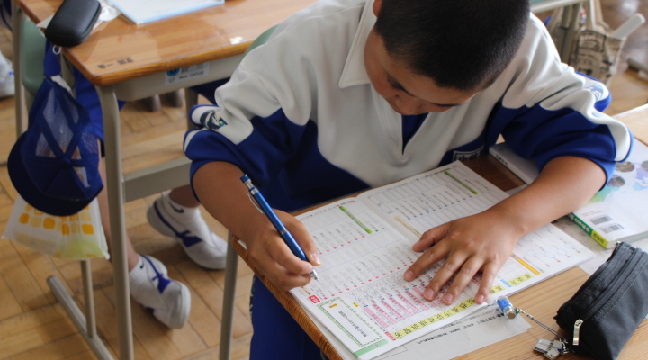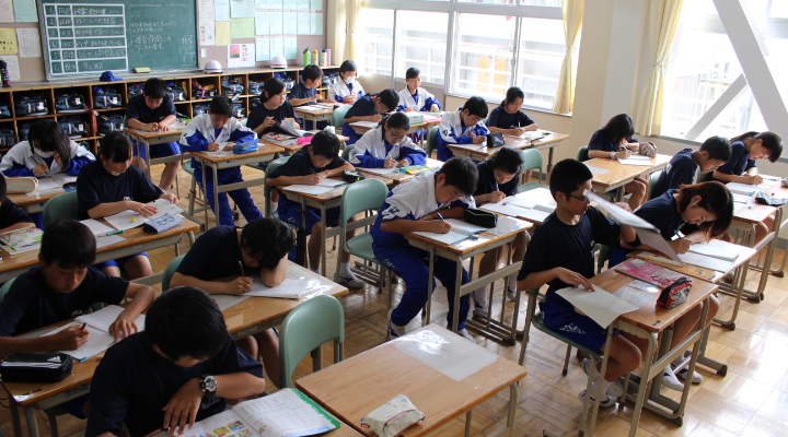 本日は、朝の時間と昼休みの時間を使って全学年がテストに向けた学習に取り組んでいました。