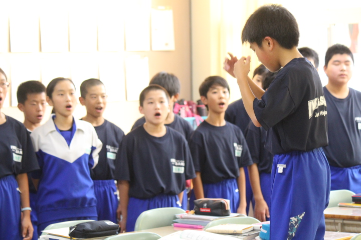 その一生懸命に振っている指揮に合わせようと、クラスのみなさんが注目しながら歌う姿。