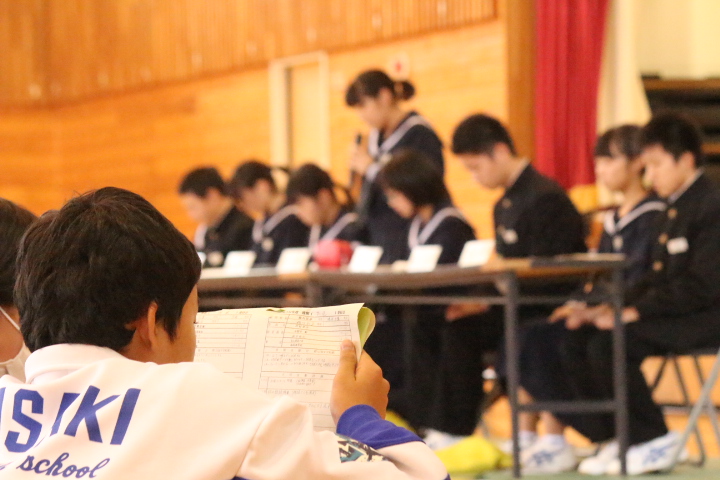 各委員会から出された活動計画内容に対して、建設的な意見がたくさん出てきたことに、磐崎中学校生徒会の一員としての自覚があることが伝わり、とてもうれしく感じました。