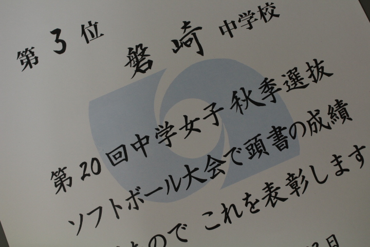 さて、この連休に行われました いわき市中学女子秋季選抜ソフトボール大会で見事3位入賞を果たしました。おめでとうございます。