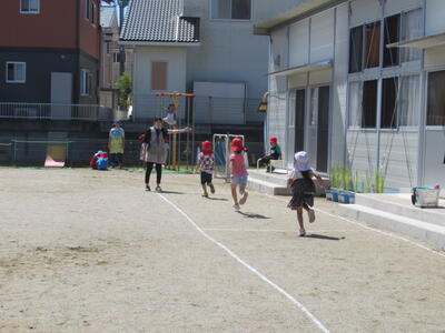 水分補給をしっかりして、休憩をこまめに取りながら、かけっこやリレーを張り切っていました。
