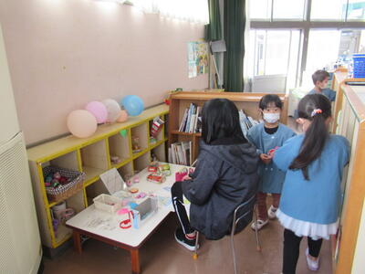 2022年12月12日 15時13分うめ組さんが年長さんたちの「サロンごっこ」を見て「自分たちもやりたい!」と先週から準備していました。