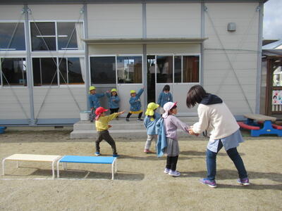 新しいサッカーゴールを使って友達とサッカーを楽しんでいたお友達もいました。
