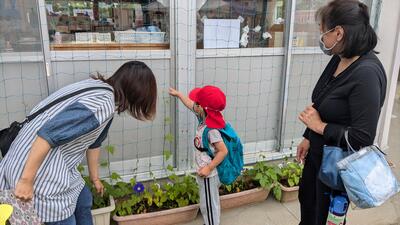 嬉しいですね。先生は子どもの喜びを受け止め、「本当だ!アサガオ咲いたね!きれいだね♡教えてくれてありがとう」と感動を共有していました。