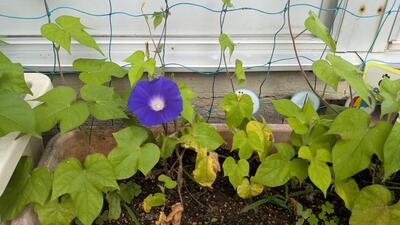 青紫色のアサガオでした。次は何色のアサガオが咲くのでしょうか楽しみですね