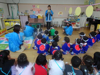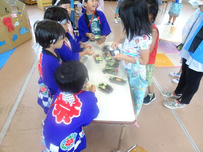 ひよこ組(年少)のお菓子釣り、うめ組(年中)のたこ焼き・焼きそば屋さん、わかば組(年長)のお化け屋敷と、それぞれ創意工夫に溢れた楽しい出し物になりました。子供たちの1学期の成長がうかがえる園行事になりました。
