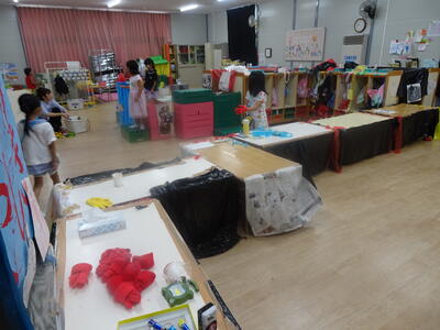 子供たちの「~をやってみたい」という自主性を尊重し、子供たちは担任の助けを借りながら準備を進め、当日はお客さんの接待を一生懸命行いました。