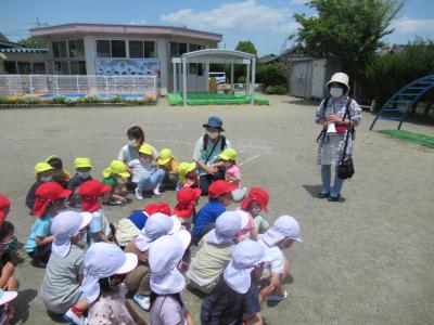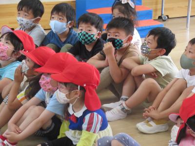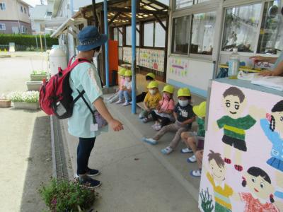 2021年5月28日 11時40分今日、第1回避難訓練を行いました。子ども達は、担任からの「おさない、かけない、しゃべらない、もどらない」の避難の約束の話に真剣に耳を傾けていました。 ひよこ組さんは今回は初めての訓練だったで、うめ組さん、わかば組さんの避難の様子を見学しました。次回からはひよこ組さんも実際に避難の訓練をします。