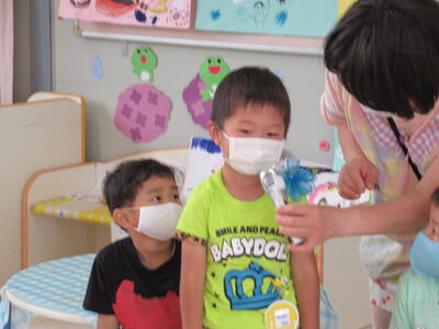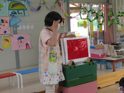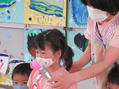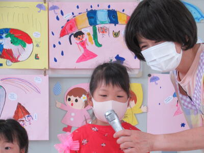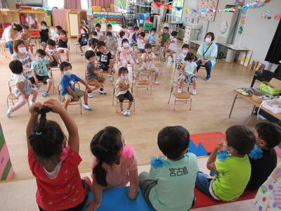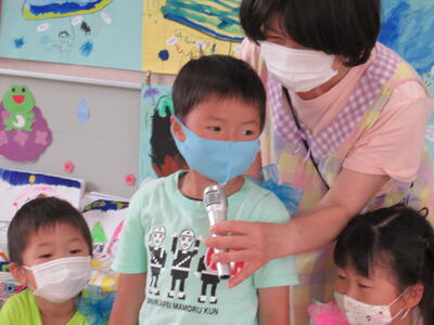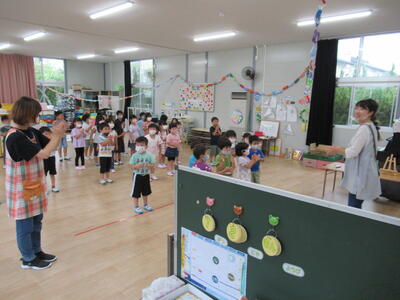 今日は6月の誕生会でした。6月生まれは、わかば組さん1名、うめ組さん2名、ひよこ組さん2名の5名です。