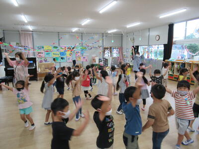 昨日に引き続きみんなで夏祭りの踊りの練習をしました。